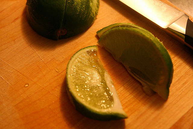 Cut your lime in quarters and rub along the rim of the glass. Dip glass in salt so a salt ring forms. Squeeze the remaining juice from the lime.
