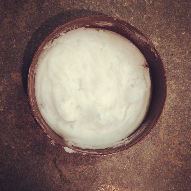 In a small pot, melt 1 tbsp each of cocoa butter, coconut oil, shea butter, and beeswax over low to medium heat.