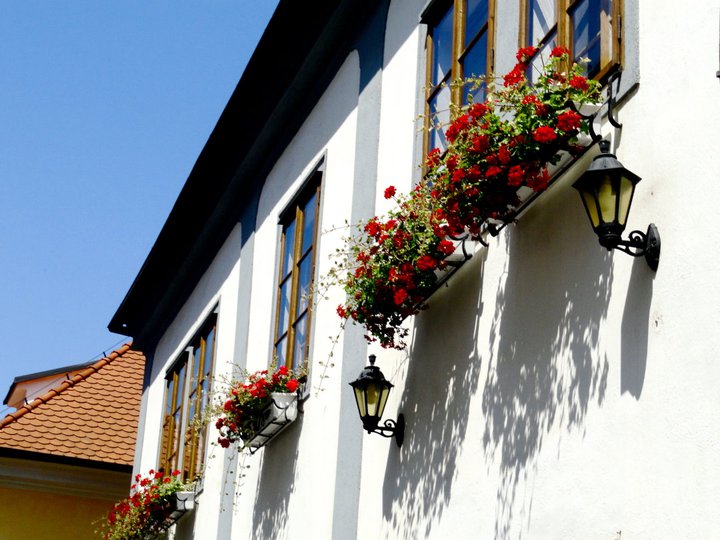 The city has uniform architecture and the red roofs provide an amazing contrast to the rolling green hills in the background. Gorgeous red flowers hung from window baskets along the beautiful cobblestone streets.