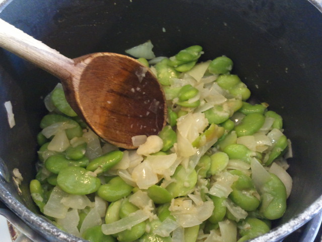 Add fava beans and cook for 1 minute.