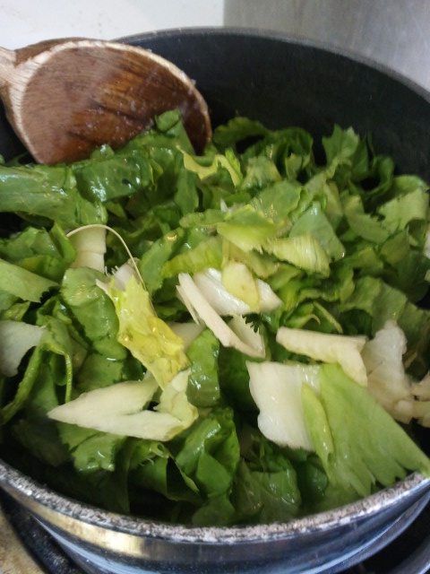 Chop the garlic, escarole, onions and mint and set aside.