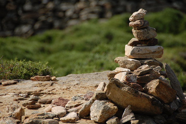 More advanced trail markers than sticks and pebbles, cairns are stacked rocks, ranging in size that are used to mark mountain biking and hiking trails. They are modernly used to show that people have been to a natural location, enjoyed it and want to share it with others. Rock cairns aren’t new through; they’ve been used by humans throughout prehistory to signify all kinds of things from landmarks to meeting locations to trails used for spiritual pilgrimages.