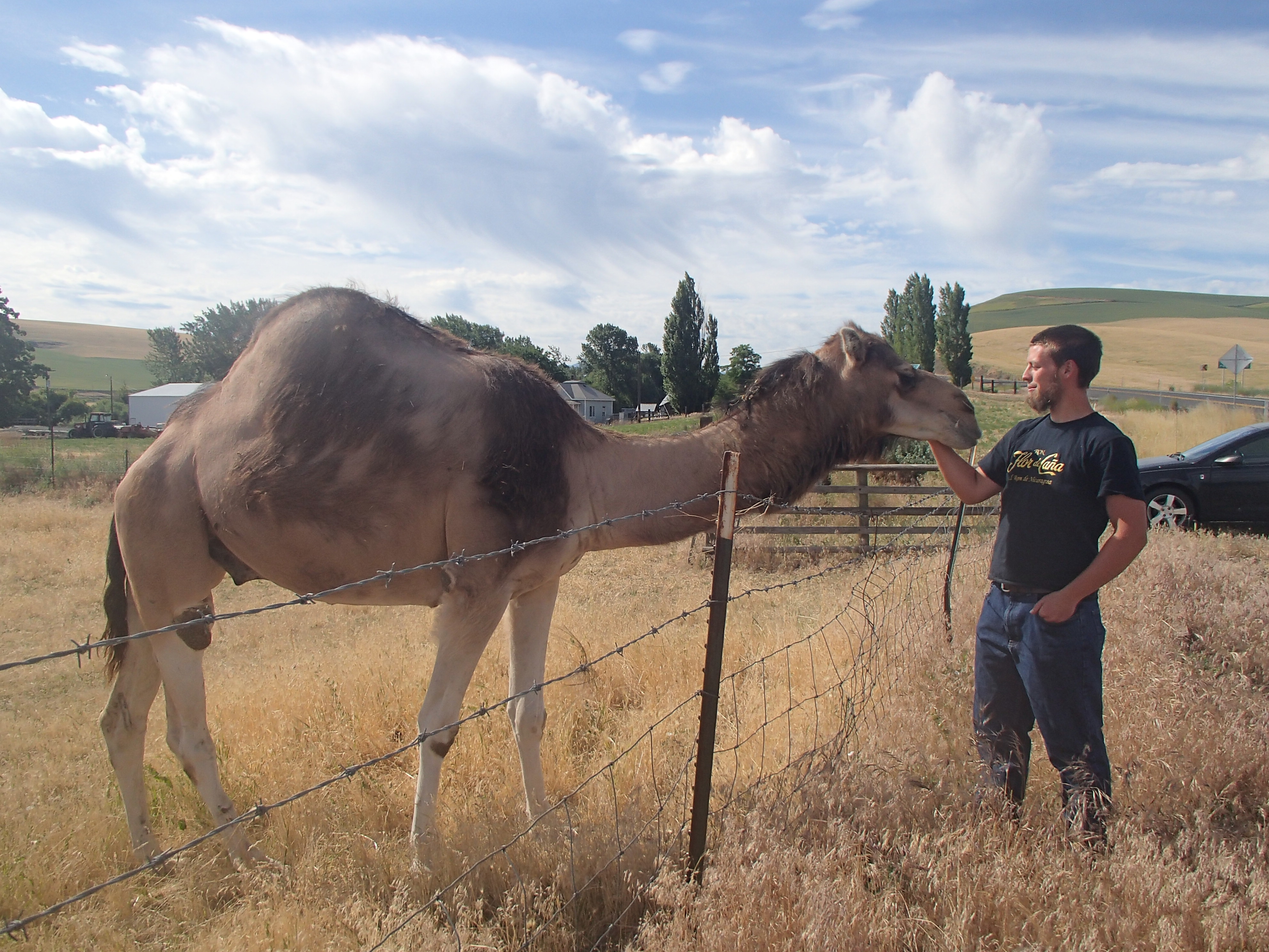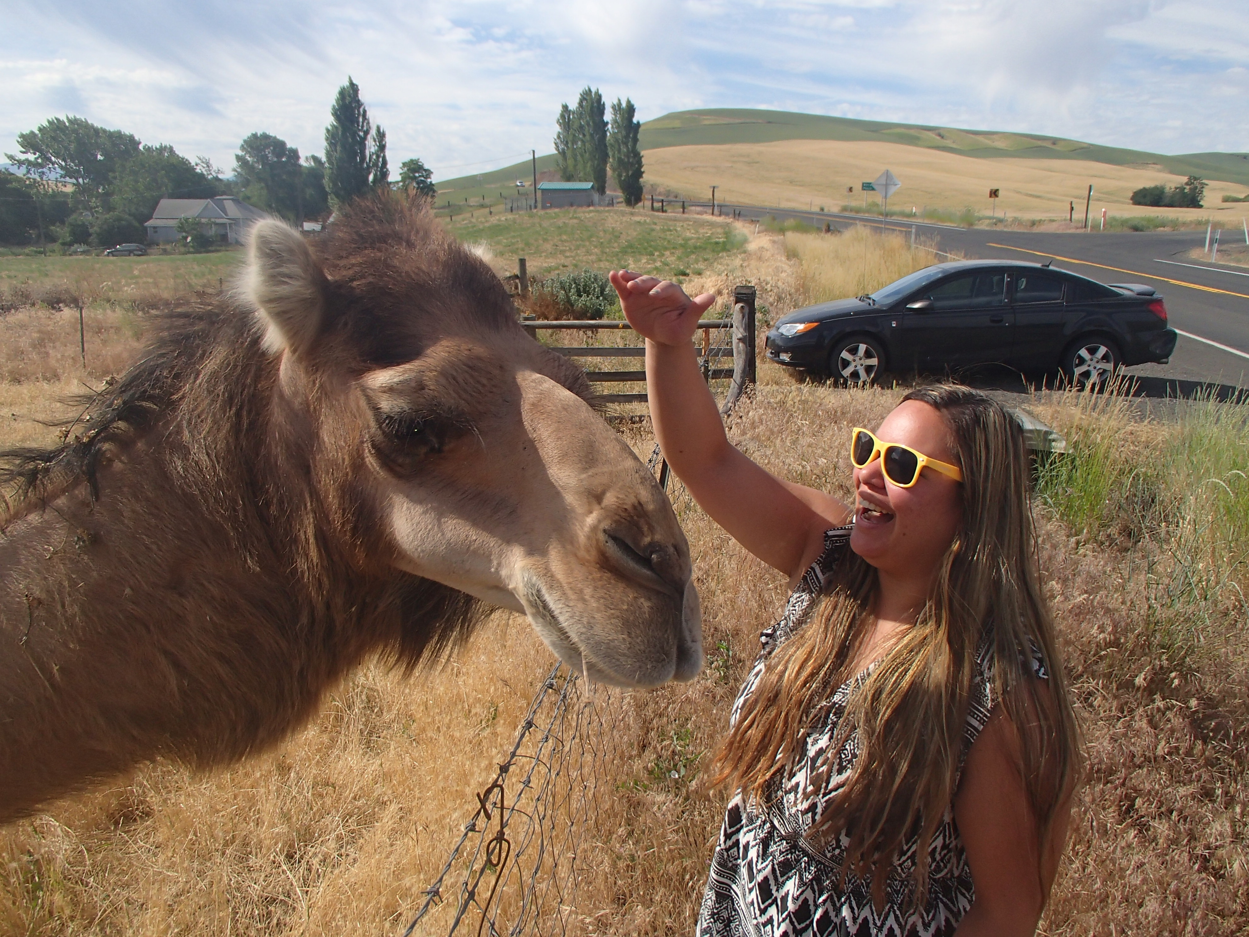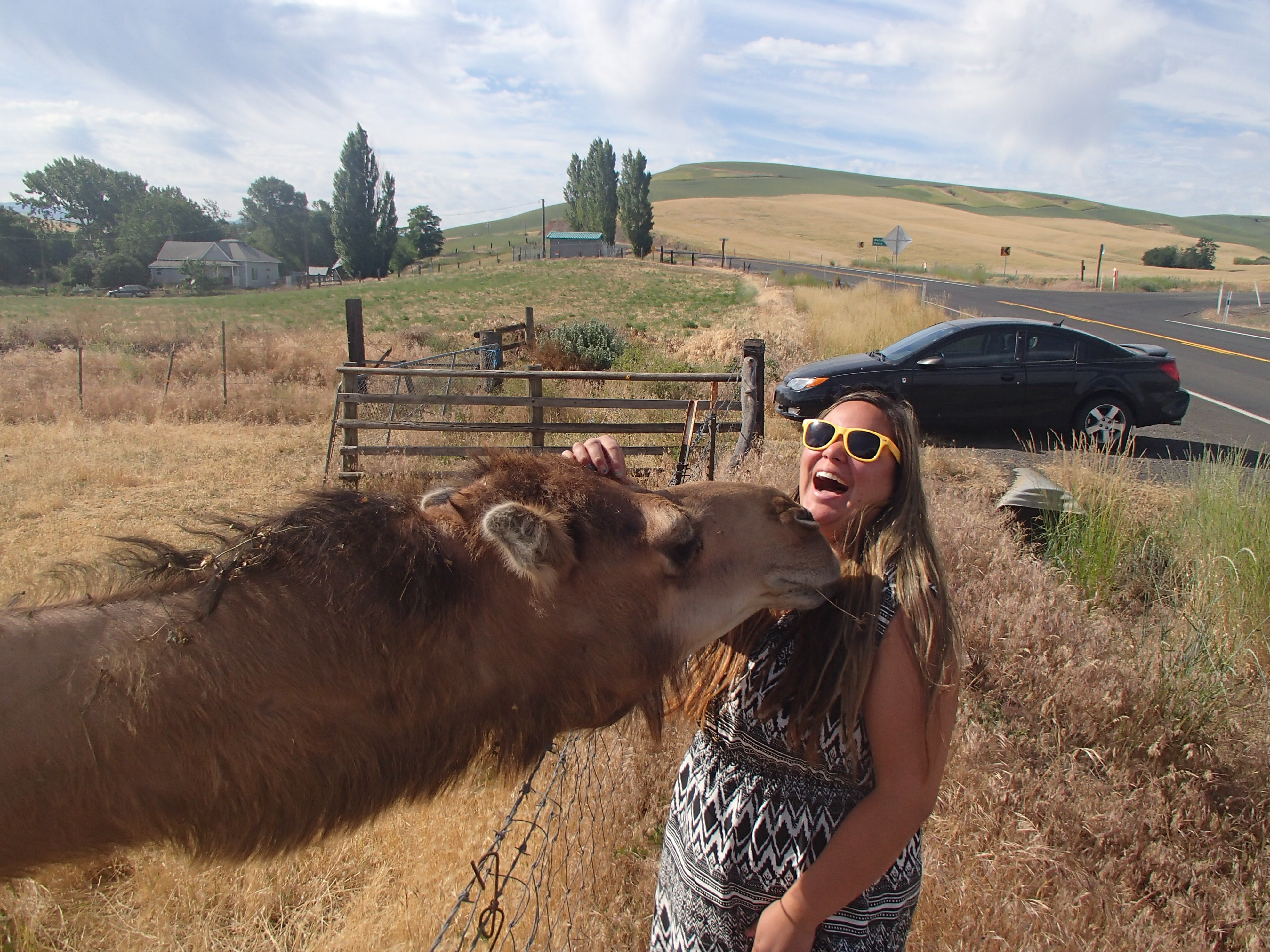 While cruising the Palouse hills from Walla Walla through small town Waitsburg this weekend, I saw a bizarre creature on the side of the road and needed to stop immediately to check it out. When we pulled over, we were lucky enough to get to meet a camel!