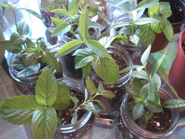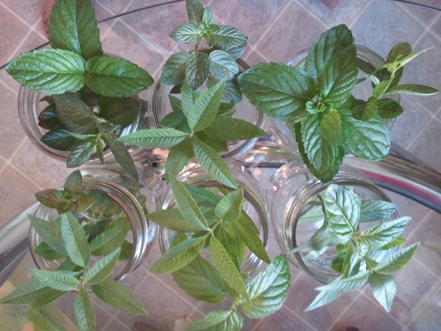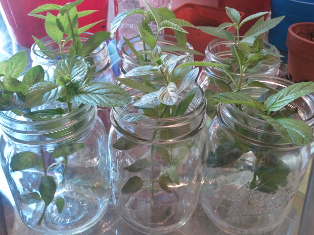 Filled the jar with a mixture of dirt and perlite, then I took some cuttings from my mint and verbena plants.