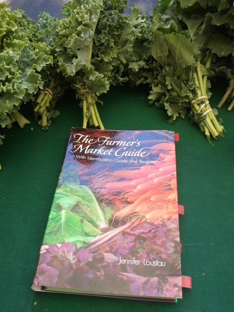 Since we were selling kale, arugula and beets, I brought an awesome book I have, The Farmer’s Market Guide by Jennifer Loustau to show people what they can do with their local and fresh produce. Bookmarked with the pages for our vegetables, people loved reading about what they could cook when they returned home.