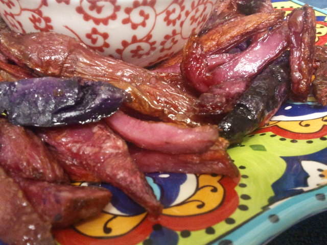 Sometimes you just want French fries for dinner. I sourced some incredible purple and pink potatoes from the farmer’s market and on a busy day, decided I was going to eat a ton of French fries and call it a full-balanced meal. With some Alder Smoked Wild Salmon Chowder by Fishpeople on the side for dipping, this was a delight.