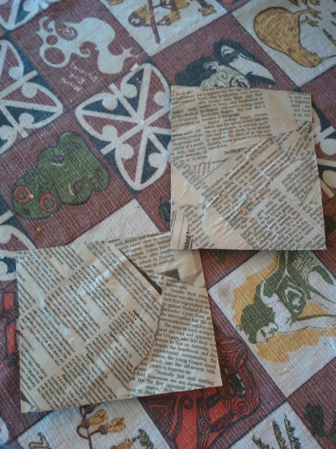 With Mod Podge, I affixed the newspaper to the flat cardboard and made sure to glue it on.