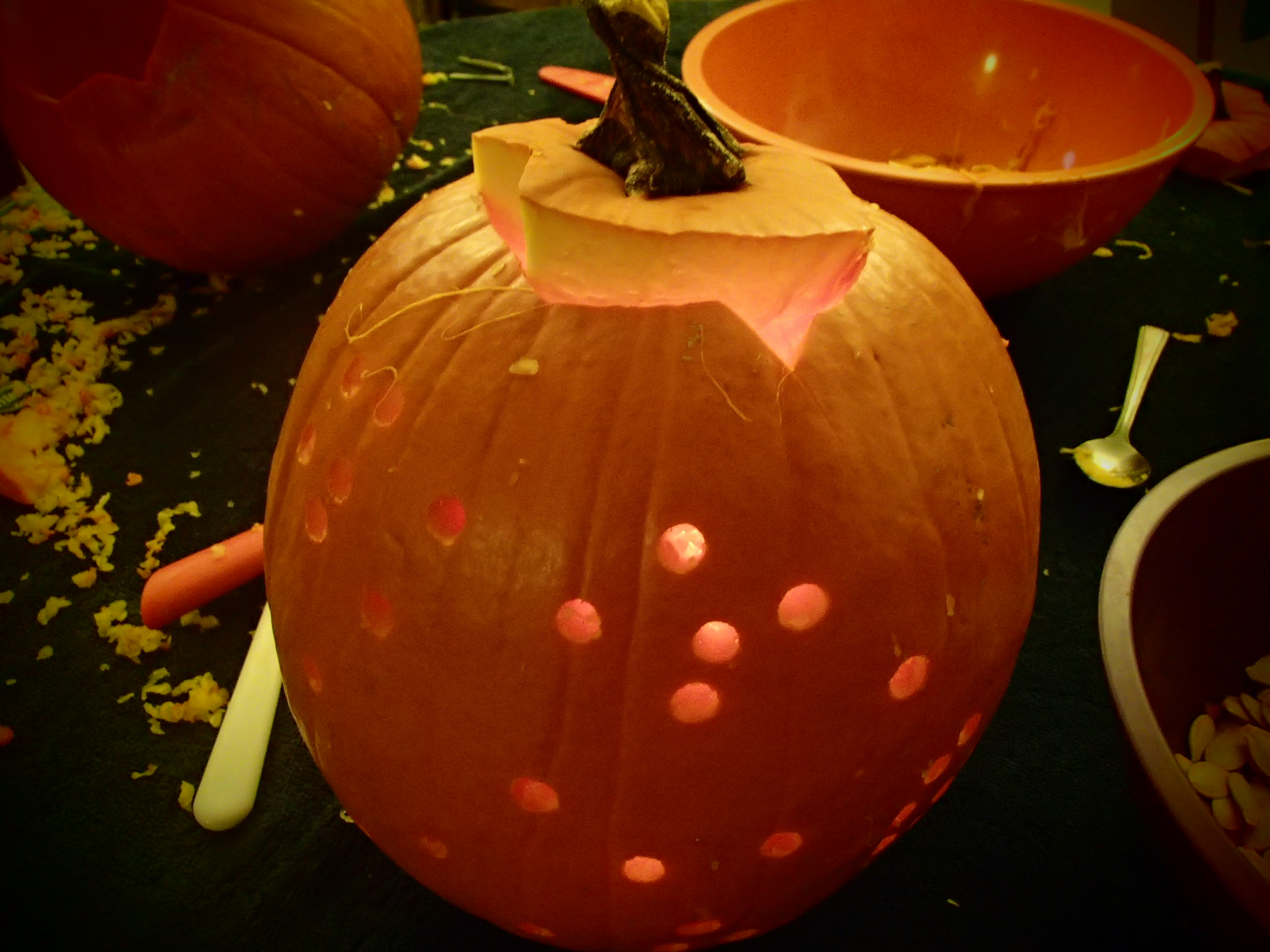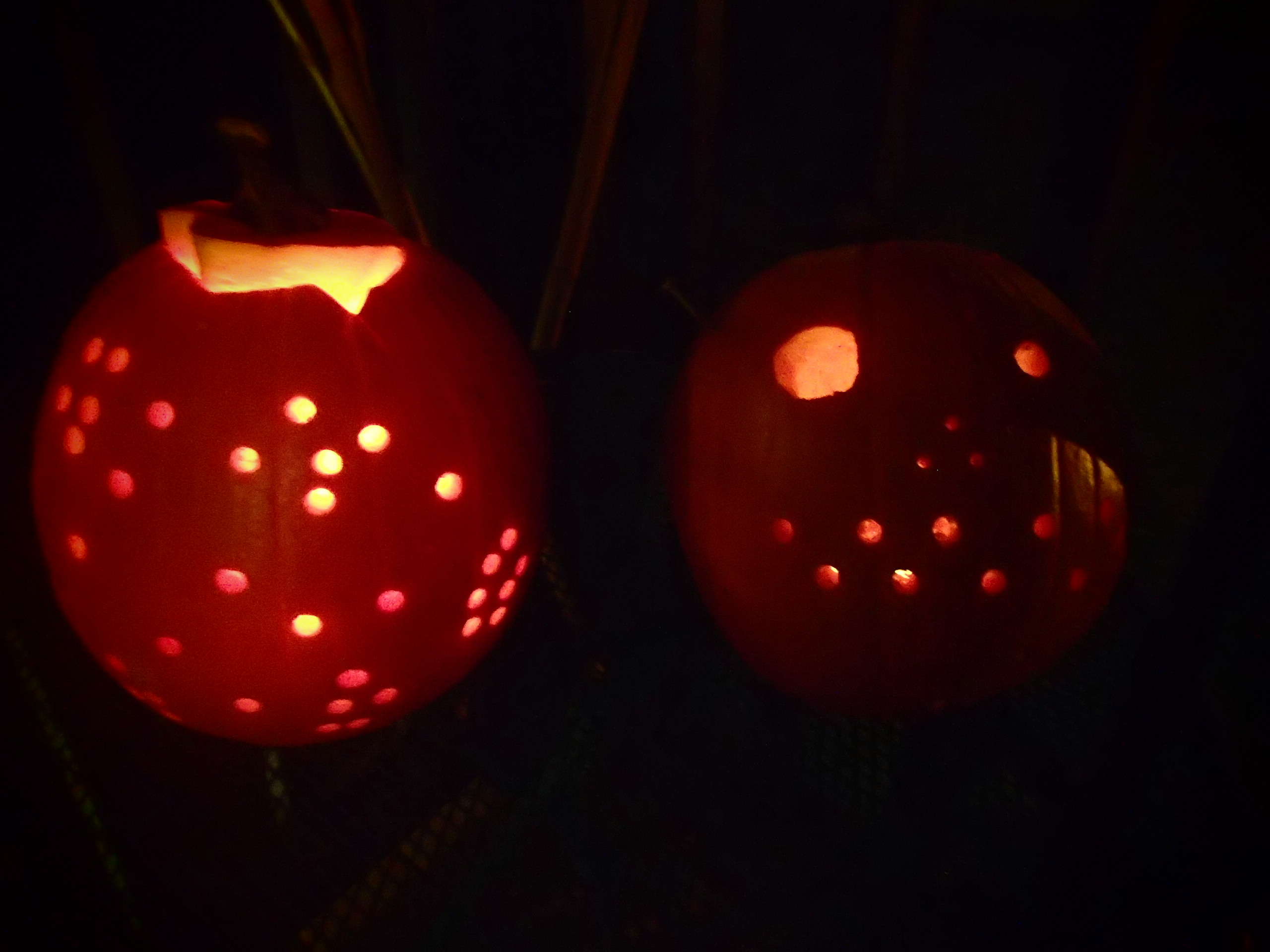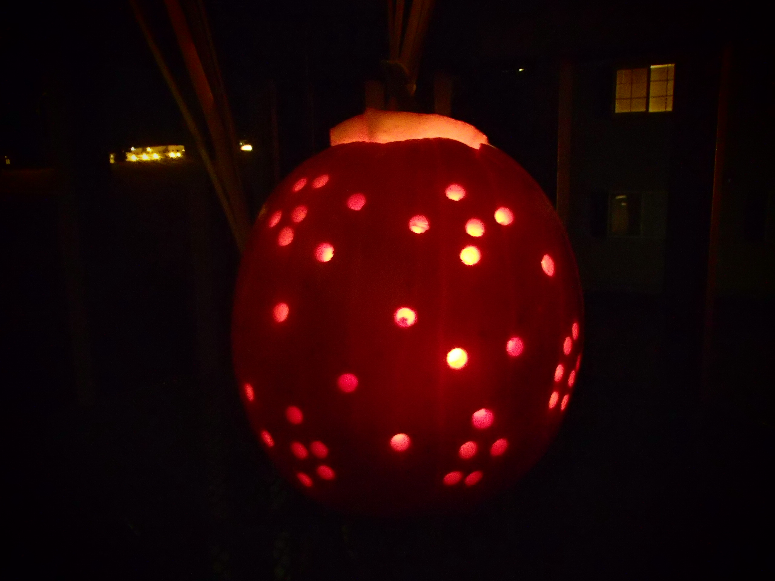 We had never tried drilled pumpkins before, instead of carving them, and the result was a unique and delicate looking jack-o-lantern.