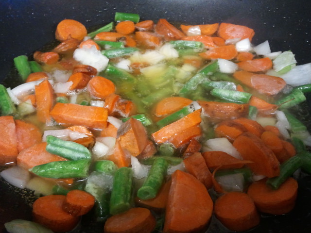 Add the carrots and green beans and sauté until soft.