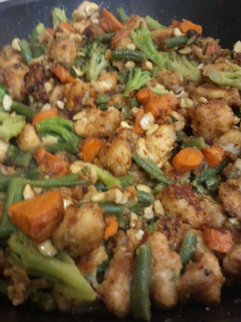 I stood in my kitchen, staring into the fridge, wondering what to do for dinner. I saw chicken breasts and thought of things I could do with it that were different from my usual fare. After a quick browse around the pantry, I decided to make my own Cashew Chicken.